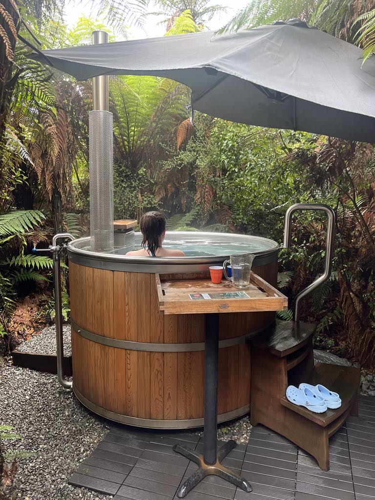 We found yet another steal on Bookme.nz and visited the Waiho hot tubs for a boiling hot bath in the middle of the forest. All the tubs are naturally heated from wood fire stoves, and a cold drinking water tap is your only means of regulating the temperatures. Paying little/no attention to the laminated guidance book, we slow cooked ourselves in the tub for 60 minutes at 43 degrees. With hindsight, and having had a google, this was (a) stupid and (b) explains why we felt quite sun-strokey and light headed for the rest of the day. Seeing as it was still very much pouring, we parked ourselves in the only open bar and just about managed to stay awake next to the fire (more heat lol) until dinner time.